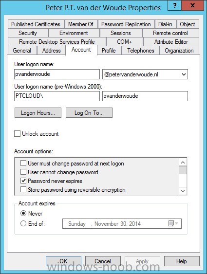 In the first part of this blog series I went through the introduction and the prerequisites and in the second part I went through the installation and configuration of AD FS. This third part of the blog series will be all about configuring, configuring and configuring. First it's required to add the public domain name to the Microsoft Online Services, then I'll add the public domain name as a UPN to the users and then I'll enable active directory synchronization. Enable Active Directory Synchronization The first thing is that I have to enable Active Directory synchronization in the Microsoft Online Services. This allows me to synchronize our on-premises users to the Azure AD. First connect to the Microsoft Online Services by using the following command, which will prompt for credentials. In the credentials dialog box provide the credentials of the Microsoft Intune subscription.Connect-MsolService –Credential $cred After that it’s possible to enable Active Directory synchronization by using the following command.Set-MsolDirSyncEnabled -EnableDirSync $true After using the command to enable Active Directory synchronization it’s required to confirm the action by simply answering with Y. To verify a successful configuration, simply logon to the Account portal and verify the Active Directory synchronization setting by navigating to Management > Users. It should display the following information. Add public User Principal Name to users To enable the user to use the public domain name to logon to their devices, and the Microsoft Online Services, it’s necessary to add the public domain name as their primary User Principal Name (UPN). These configurations will be done through PowerShell. To add a UPN for a forest use the following command. In that command the Identity is the forest name and the UPNSuffixes is the public domain name.Set-ADForest -Identity "PTCLOUD" -UPNSuffixes @{Add="petervanderwoude.nl"} To verify the success of the PowerShell action, simply open the Properties of one of the Active Directory Domains and Trusts and check the UPN Suffixes tab. To set the UPN as a user’s primary UPN use the following command. In that command the SearchBase is the OU that contains the required users and the UserPrincipalName is the public domain name.Get-ADUser -Filter * -SearchBase 'OU=NORMAL USERS,OU=USERS,OU=PTCLOUD,DC=PTCLOUD,DC=LOCAL' -Properties userPrincipalName | foreach { Set-ADUser $_ -UserPrincipalName "$($_.samaccountname)@petervanderwoude.nl"} To verify the success of the PowerShell action, simply open the Properties of one of the users and check the Account tab. Install and configure Microsoft Azure Active Directory Sync Services The next thing is to install and configure the Microsoft Azure Active Directory Sync Services. This tool will allow us to synchronize the on-premises user with the Azure AD. On the Welcome to Azure AD Sync page, specify an Installation path, select I agree to the License terms and click Install. On the Connect to Azure AD page, specify the credentials of the Microsoft Intune subscription and click Next. On the Connect to AD DS page, specify the information of the on-premises forest (see prerequisites) and click Add Forest. After the forest is added click Next. On the Uniquely identifying your user page, click Next. On the Optional features page, click Next. On the Ready to configure page, click Configure. On the Finished page, click Finish. Verify user synchronization After setting up the user synchronization it’s important to verify the success. In the Account portal, navigate to Management and click Users. In the Users overview it should start showing the synchronized users. Note: In my overview it shows a user with the public domain name UPN, a user without and the initial administrator.